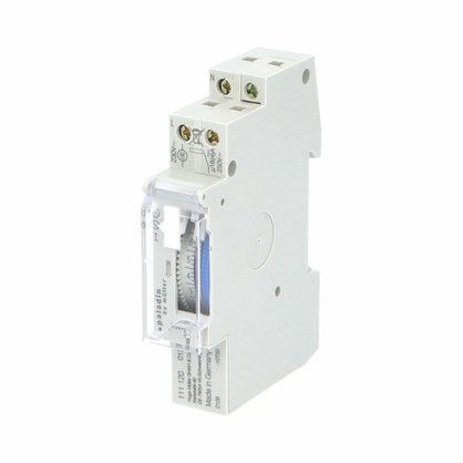 Hodiny spínací PALADIN 111120, analogové (mechanické), denní program (24 hodin), šířka 17,5 mm (1 mod.), napájecí napětí 230V 50-60Hz, max. spínaný proud 16A, nejkratší spínací interval 15 minut, bez zálohy chodu, přípustná teplota okolí -5°C až +50°C, šedá barva, časová základna - QUARTZ (křemíkový oscilátor), pro montáž na nosnou lištu DIN do rozváděče, připojení vodičů pomocí šroubových svorek, krytí IP20 podle DIN EN 60529.