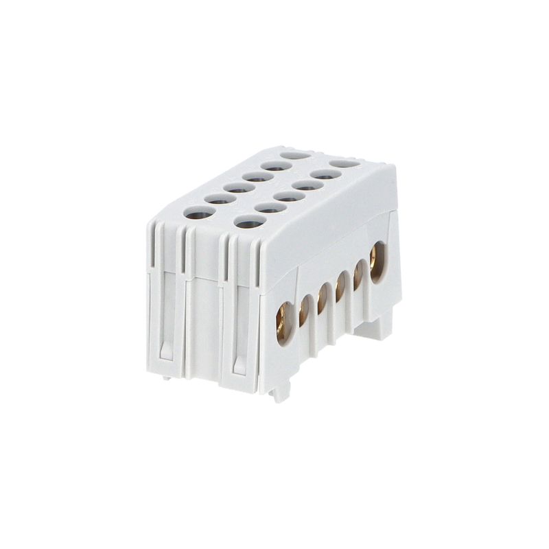 Můstek A 8+4 (svork.8x16mm2, 4x25mm2), krytý dvouřadý, IP20, šedý, 130A, na DIN, rozměr 47,4x27x34,5mm. EN 60998-1.
