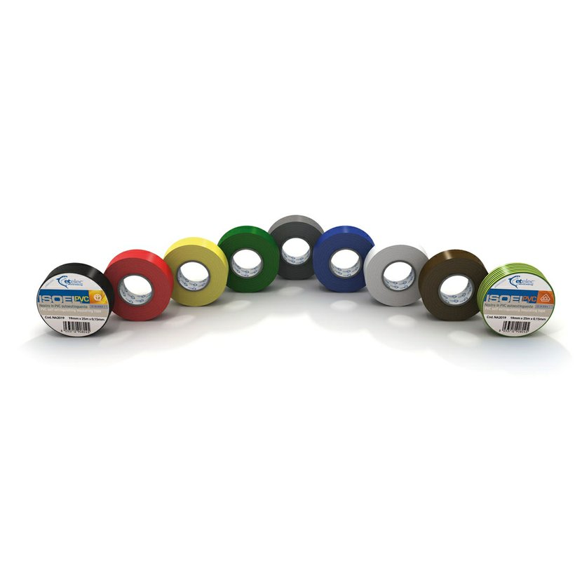 PVC izolační páska - izolace, ochrana a identifikace elektrických přípojek, spojů a kabelů nízkého napětí do 0,6 / 1 kV. Pro použití ve všech oblastech civilních a průmyslových elektrických systémů. Dobrá odolnost proti oděru, korozi a vlhkosti.